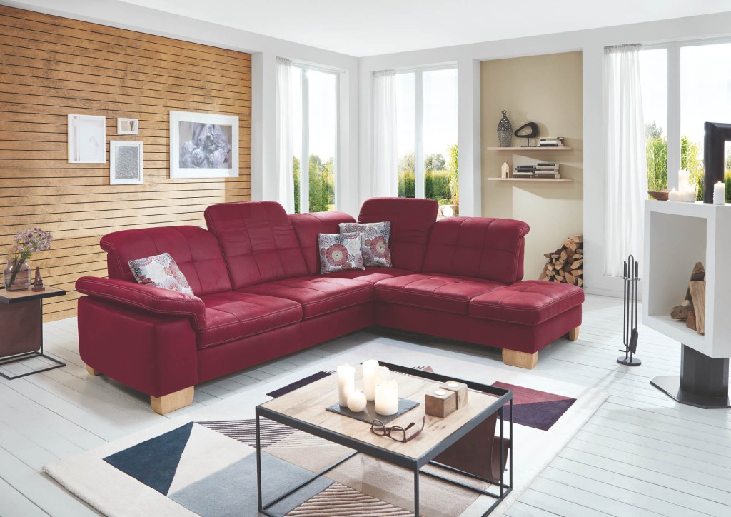 1,5-Sitzer Kombielement mit Kopfteilverstellung, Anstellhocker rechts, Rücken echt, BHT ca. 109/88-102/243 cm