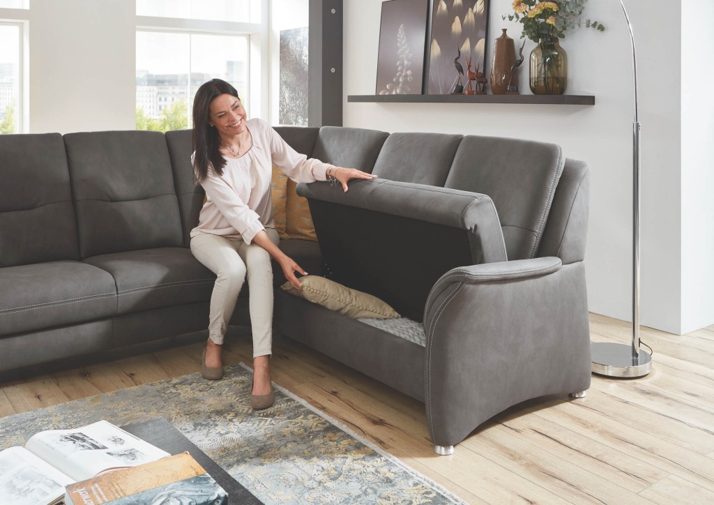 Erleben Sie Komfort und Stil mit dem Ecksofa der Marke Planpolster. Dieses exquisite Möbelstück ist eine hervorragende Ergänzung für jedes Wohnzimmer, das sowohl Funktionalität als auch Eleganz schätzt. Das Sofa bietet verschiedene Sitzvarianten - Kaltschaum, Federkern oder Boxspring - um Ihre individuellen Komfortbedürfnisse zu erfüllen. Jede dieser Optionen wurde sorgfältig ausgewählt und verarbeitet, um Ihnen ein kompromissloses Sitzerlebnis zu bieten. Ein integrierter Bettkasten im 2-Sitzer bietet zusätzlichen Stauraum, ideal zur Aufbewahrung von Decken, Kissen oder anderen Gegenständen, die Sie gerne griffbereit haben möchten. Der praktische und diskrete Stauraum trägt dazu bei, Ihr Wohnzimmer ordentlich und aufgeräumt zu halten. Der 3-Sitzer des Sofas verfügt über eine motorisierte Vorziehbank, die sich bis zu ca. 19cm nach vorne ausfahren lässt. Diese innovative Funktion ermöglicht es Ihnen, den Sitz nach Ihren Bedürfnissen anzupassen und so ein noch angenehmeres Sitzerlebnis zu schaffen. Mit einer großzügigen Sitzhöhe von 49 cm bietet dieses Sofa einen optimalen Sitzkomfort. Es steht zudem ein großer Typenplan zur Verfügung, der Ihnen dabei hilft, das perfekte Modell für Ihren Raum zu finden. Sie können zwischen zwei verschiedenen Sitztiefen wählen: 51 cm oder 54 cm. Darüber hinaus sind auch zwei unterschiedliche Sitzhöhen verfügbar: 46 cm und 49 cm. Diese Optionen ermöglichen es Ihnen, das Sofa an Ihre individuellen Vorlieben und Bedürfnisse anzupassen. Das Ecksofa der Marke Planpolster ist mehr als nur ein Möbelstück - es ist eine Investition in Komfort, Qualität und Stil. Machen Sie Ihr Wohnzimmer zu einem Ort des Wohlfühlens mit diesem herausragenden Sofa.