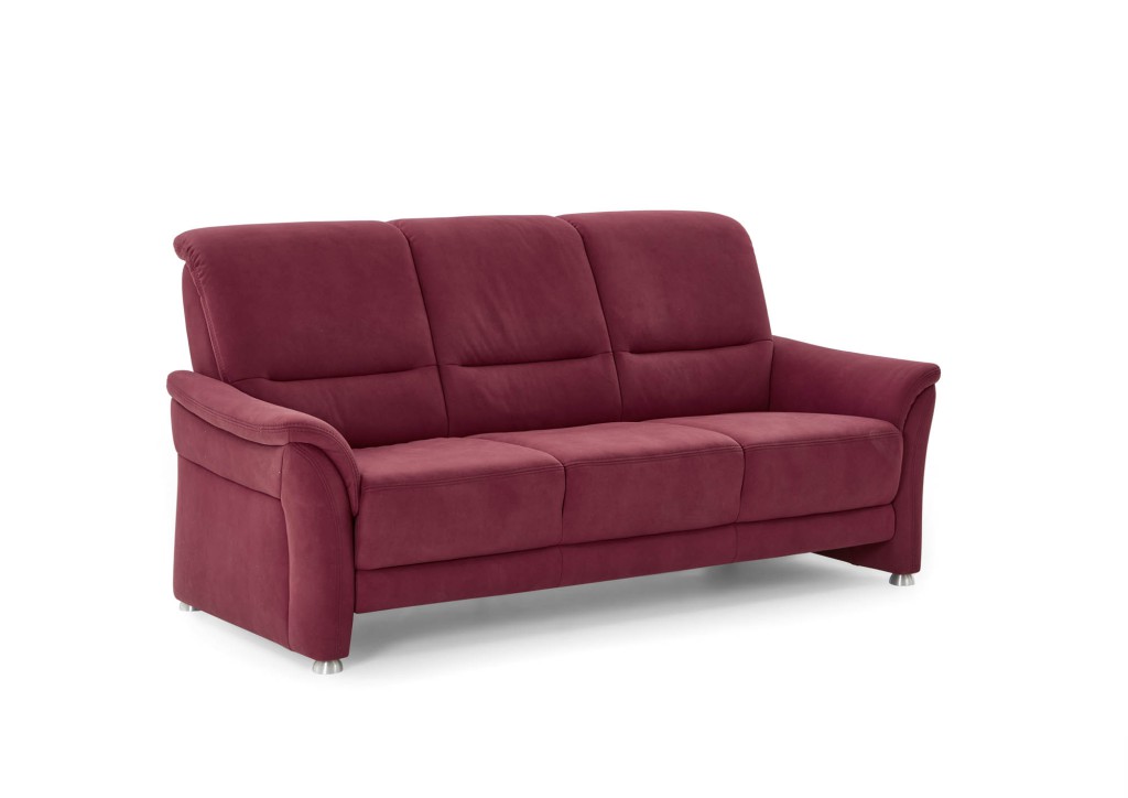 Microfaser, 100% Polyester, Farbe wine, Rücken Nessel, Sitz Federkern, Doppelsteppnaht ohne Kontrastnaht, Fuß Metall alu gebürstet, Sitzhöhe 46 cm, Sitztiefe 53 cm, bestehend aus: 3-Sitzer, 2 Armlehnen, BHT ca. 198/96/93 cm 2,5-Sitzer, 2 Armlehnen, BHT ca. 172/96/93 cm