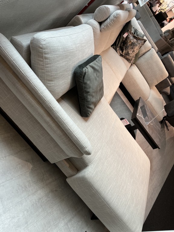 In Stoff City 84 Clay, Metallkufe schwarz, Armlehne A, alle Teile Rücken echt, Sitzhöhe ca. 45 cm, Rückenhöhe ca. 85 cm, Schenkelmass ca. 349 x 226 cm, Longchair 170cm tief